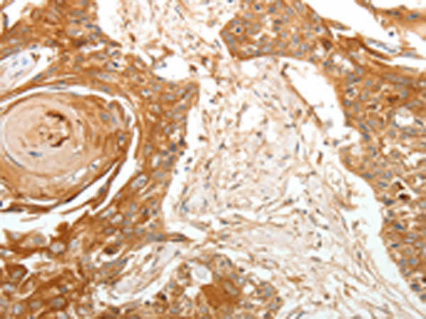 The image is immunohistochemistry of paraffin-embedded Human esophagus cancer tissue using P04490(TERT Antibody) at dilution 1/40. (Original magnification: ×200) |