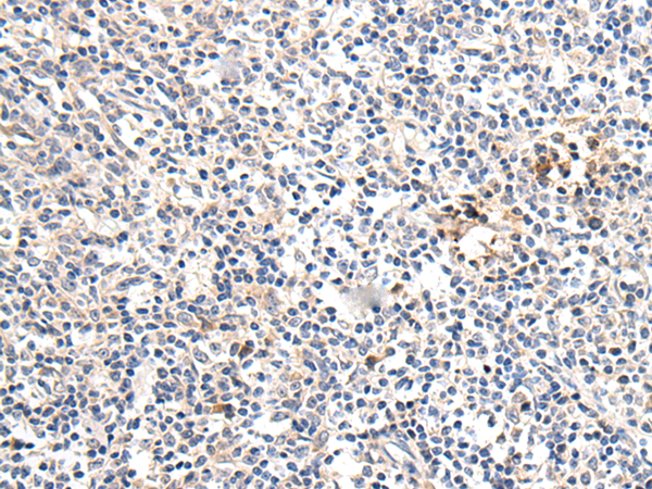 The image is immunohistochemistry of paraffin-embedded Human tonsil tissue using P12711(TGFB1 Antibody) at dilution 1/25. (Original magnification: ×200) |