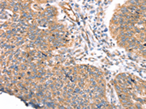 The image is immunohistochemistry of paraffin-embedded Human liver cancer tissue using P12279(TGFB2 Antibody) at dilution 1/30. (Original magnification: ×200) |