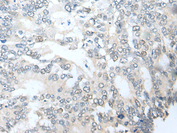 The image is immunohistochemistry of paraffin-embedded Human colorectal cancer tissue using P05818(TGFB3 Antibody) at dilution 1/20. (Original magnification: ×200) |