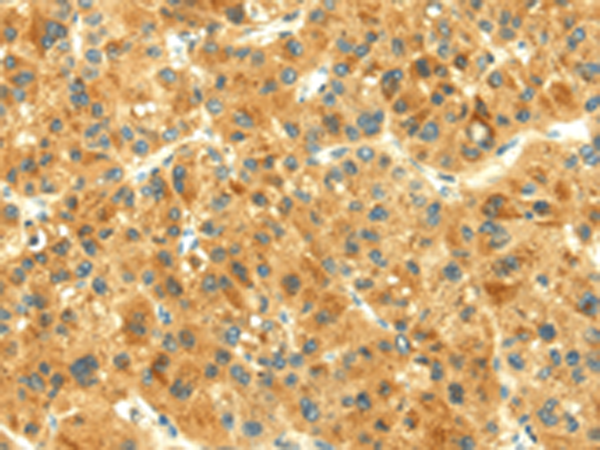 The image is immunohistochemistry of paraffin-embedded Human liver cancer tissue using P12281(THAP3 Antibody) at dilution 1/30. (Original magnification: ×200) |