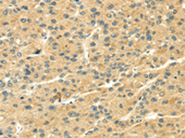 The image is immunohistochemistry of paraffin-embedded Human liver cancer tissue using P05402(THAP3 Antibody) at dilution 1/20. (Original magnification: ×200) |