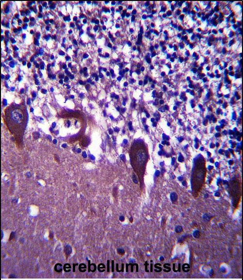 TLE6 Antibody (N-term) (Cat. #P31292)immunohistochemistry analysis in formalin fixed and paraffin embedded human cerebellum tissue followed by peroxidase conjugation of the secondary antibody and DAB staining.This data demonstrates the use of TLE6 Antibody (N-term) for immunohistochemistry. Clinical relevance has not been evaluated. |