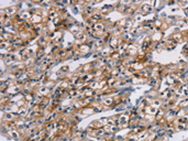 The image is immunohistochemistry of paraffin-embedded Human prostate cancer tissue using P12266(TM4SF1 Antibody) at dilution 1/25. (Original magnification: ×200) |