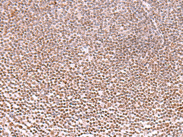 The image is immunohistochemistry of paraffin-embedded Human tonsil tissue using P06780(TMEM18 Antibody) at dilution 1/20. (Original magnification: ×200) |