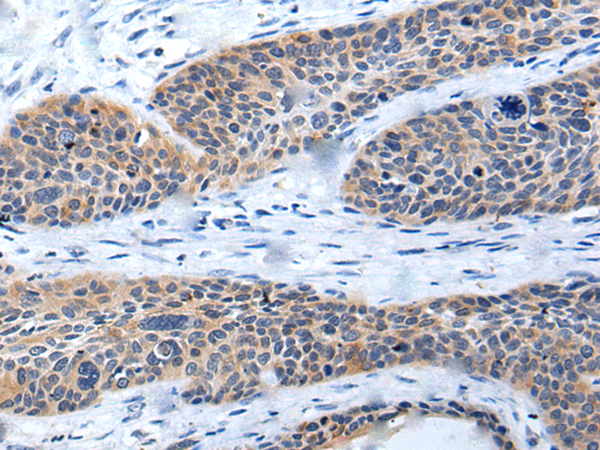 The image is immunohistochemistry of paraffin-embedded Human cervical cancer tissue using P05817(TNC Antibody) at dilution 1/20. (Original magnification: ×200) |