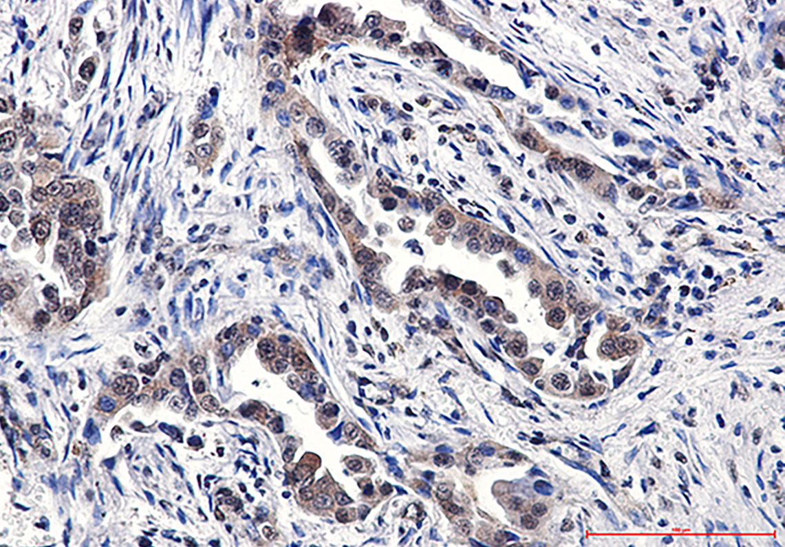 Immunohistochemistry analysis of paraffin-embedded Human lung cancer using TNF Receptor II antibody.High-pressure and temperature Sodium Citrate pH 6.0 was used for antigen retrieval. |