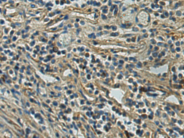 The image is immunohistochemistry of paraffin-embedded Human colorectal cancer tissue using P05664(TNFRSF10A Antibody) at dilution 1/20. (Original magnification: ×200) |