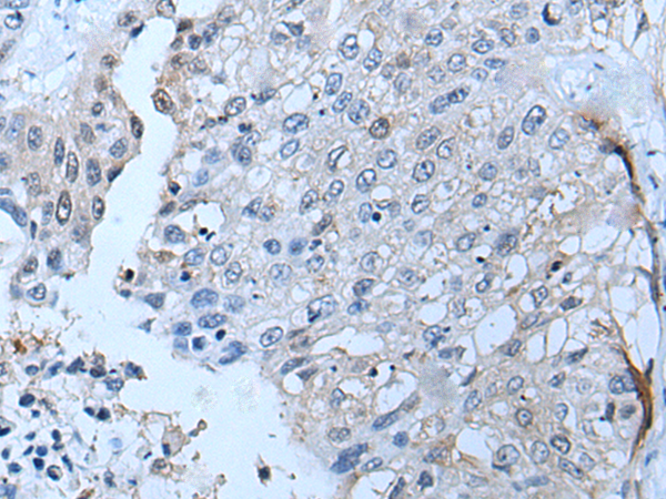The image is immunohistochemistry of paraffin-embedded Human lung cancer tissue using P07246(TNFRSF10C Antibody) at dilution 1/30. (Original magnification: ×200) |