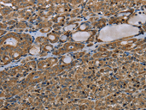 The image is immunohistochemistry of paraffin-embedded Human thyroid cancer tissue using P05098(TNFRSF13C Antibody) at dilution 1/45. (Original magnification: ×200) |