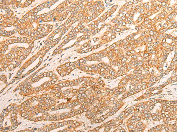 The image is immunohistochemistry of paraffin-embedded Human liver cancer tissue using P13117(TNFSF11 Antibody) at dilution 1/25. (Original magnification: ×200) |