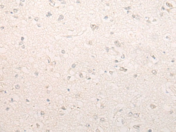 The image is immunohistochemistry of paraffin-embedded Human brain tissue using P06229(TNFSF11 Antibody) at dilution 1/20. (Original magnification: ×200) |