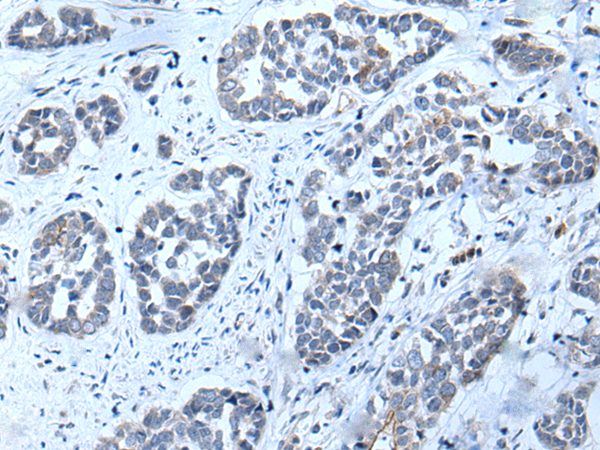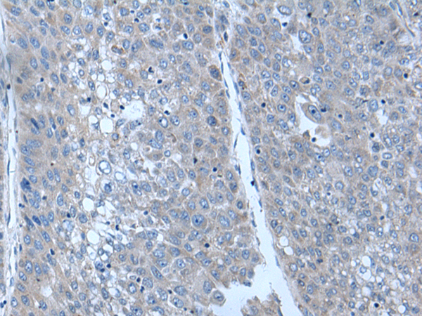 The image is immunohistochemistry of paraffin-embedded Human esophagus cancer tissue using P12313(TNMD Antibody) at dilution 1/25. (Original magnification: ×200) |