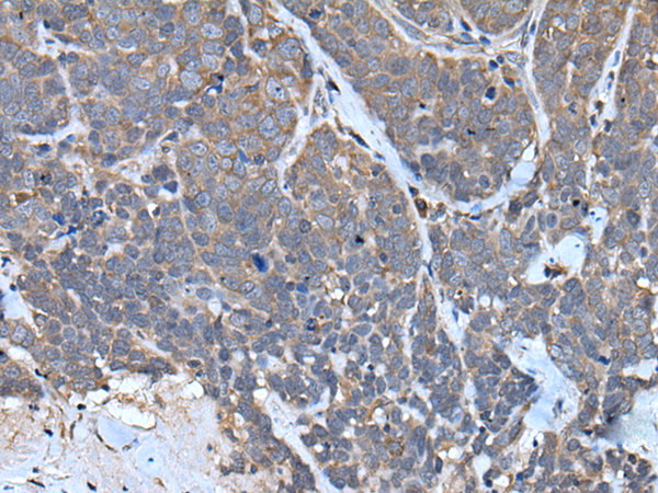 The image is immunohistochemistry of paraffin-embedded Human thyroid cancer tissue using P05435(TNMD Antibody) at dilution 1/40. (Original magnification: ×200) |