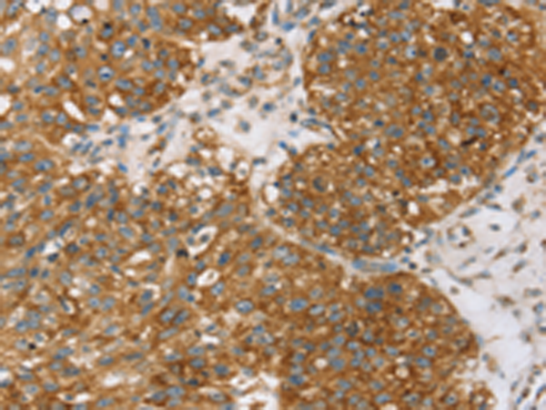 The image is immunohistochemistry of paraffin-embedded Human liver cancer tissue using P12317(TPD52L2 Antibody) at dilution 1/35. (Original magnification: ×200) |