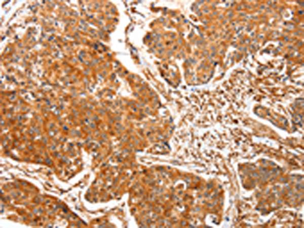 The image is immunohistochemistry of paraffin-embedded Human esophagus cancer tissue using P03948(TPM2 Antibody) at dilution 1/30. (Original magnification: ×200) |