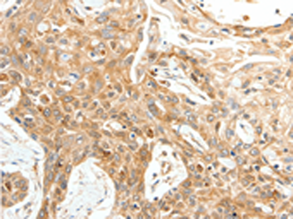 The image is immunohistochemistry of paraffin-embedded Human esophagus cancer tissue using P04228(TPM2 Antibody) at dilution 1/25. (Original magnification: ×200) |