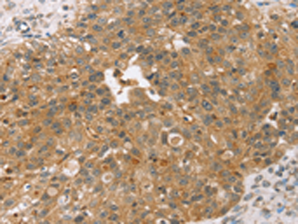 The image is immunohistochemistry of paraffin-embedded Human esophagus cancer tissue using P12321(TPST2 Antibody) at dilution 1/35. (Original magnification: ×200) |