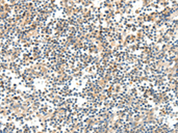 The image is immunohistochemistry of paraffin-embedded Human tonsil tissue using P11139(TRAF3 Antibody) at dilution 1/25. (Original magnification: ×200) |