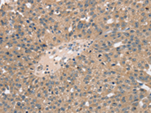 The image is immunohistochemistry of paraffin-embedded Human liver cancer tissue using P12113(TRIM3 Antibody) at dilution 1/40. (Original magnification: ×200) |