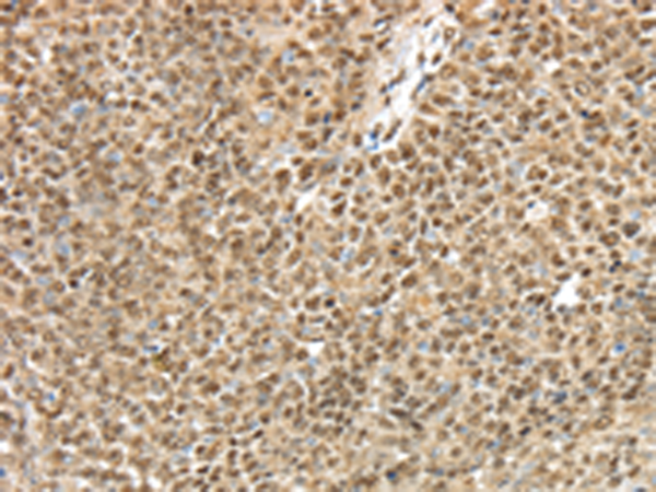 The image is immunohistochemistry of paraffin-embedded Human breast cancer tissue using P05409(TRIM33 Antibody) at dilution 1/40. (Original magnification: ×200) |