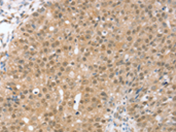 The image is immunohistochemistry of paraffin-embedded Human breast cancer tissue using P12294(TRIM35 Antibody) at dilution 1/35. (Original magnification: ×200) |