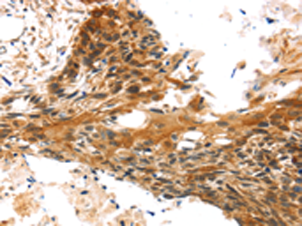 The image is immunohistochemistry of paraffin-embedded Human esophagus cancer tissue using P05414(TRIM35 Antibody) at dilution 1/25. (Original magnification: ×200) |