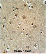 TRIM50 Antibody (C-term) (Cat. #P30708) immunohistochemistry analysis in formalin fixed and paraffin embedded human brain tissue followed by peroxidase conjugation of the secondary antibody and DAB staining. This data demonstrates the use of the TRIM50 Antibody (C-term) for immunohistochemistry. Clinical relevance has not been evaluated. |