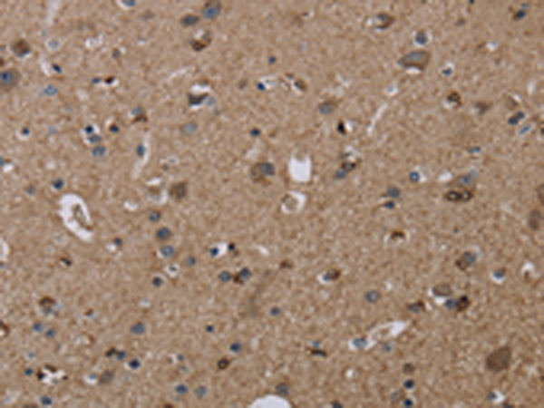 The image is immunohistochemistry of paraffin-embedded Human brain tissue using P03946(TRPM1 Antibody) at dilution 1/20. (Original magnification: ×200) |
