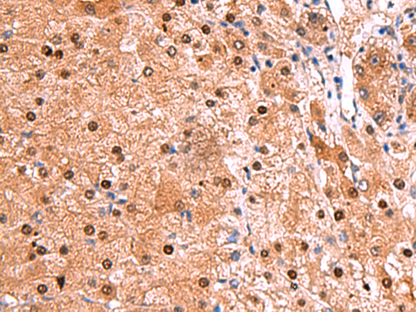The image is immunohistochemistry of paraffin-embedded Human liver cancer tissue using P03172(TSEN2 Antibody) at dilution 1/80. (Original magnification: ×200) |