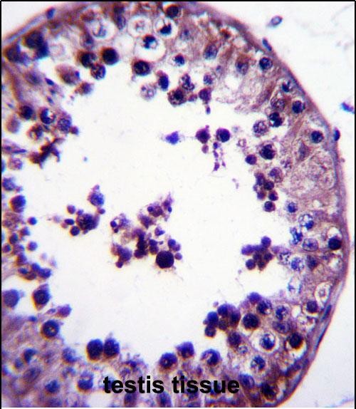 TSNAX Antibody (N-term) (Cat. #P31372)immunohistochemistry analysis in formalin fixed and paraffin embedded human testis tissue followed by peroxidase conjugation of the secondary antibody and DAB staining.This data demonstrates the use of TSNAX Antibody (N-term) for immunohistochemistry. Clinical relevance has not been evaluated. |