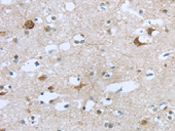 The image is immunohistochemistry of paraffin-embedded Human brain tissue using P12341(TTBK1 Antibody) at dilution 1/35. (Original magnification: ×200) |