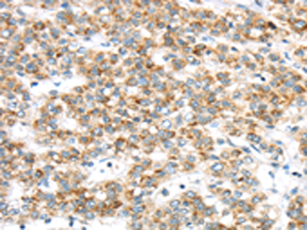 The image is immunohistochemistry of paraffin-embedded Human liver cancer tissue using P12342(TTBK2 Antibody) at dilution 1/40. (Original magnification: ×200) |