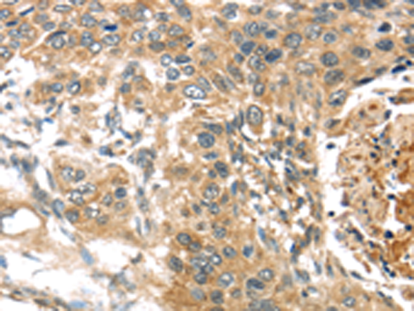 The image is immunohistochemistry of paraffin-embedded Human esophagus cancer tissue using P12343(TTI1 Antibody) at dilution 1/40. (Original magnification: ×200) |