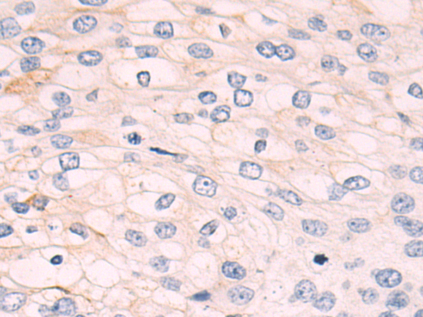 The image is immunohistochemistry of paraffin-embedded Human cervical cancer tissue using P02739(TUBA1B Antibody) at dilution 1/80. (Original magnification: ×200) |