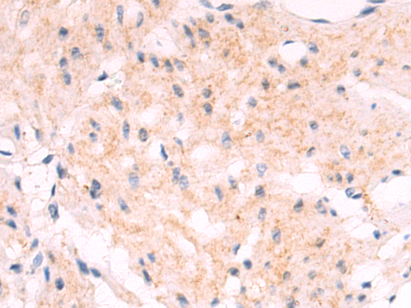 The image is immunohistochemistry of paraffin-embedded Human gastric cancer tissue using P02739(TUBA1B Antibody) at dilution 1/80. (Original magnification: ×200) |