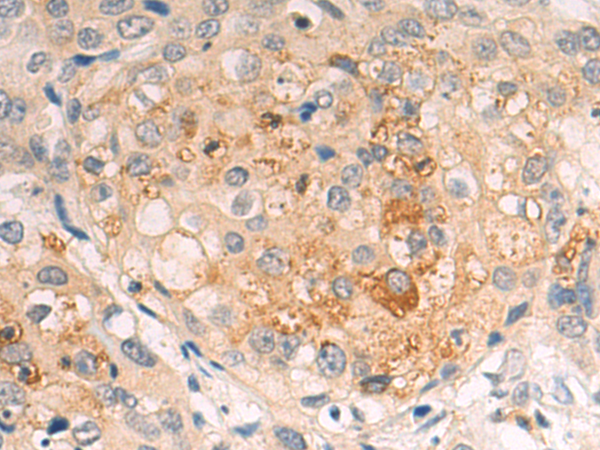 The image is immunohistochemistry of paraffin-embedded Human cervical cancer tissue using P02741(TUFM Antibody) at dilution 1/60. (Original magnification: ×200) |