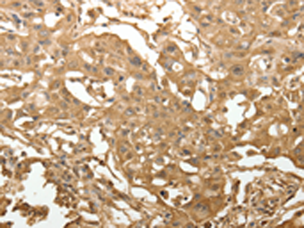 The image is immunohistochemistry of paraffin-embedded Human lung cancer tissue using P04495(TXN Antibody) at dilution 1/40. (Original magnification: ×200) |