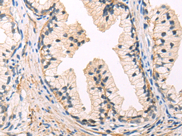 The image is immunohistochemistry of paraffin-embedded Human prostate cancer tissue using P02887(TXNL1 Antibody) at dilution 1/60. (Original magnification: ×200) |