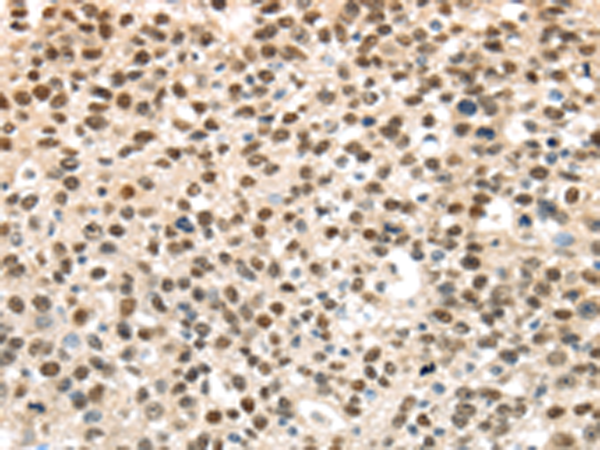 The image is immunohistochemistry of paraffin-embedded Human breast cancer tissue using P12352(UBA1 Antibody) at dilution 1/40. (Original magnification: ×200) |