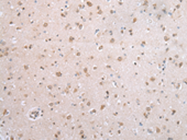 The image is immunohistochemistry of paraffin-embedded Human brain tissue using P05629(UBE2I Antibody) at dilution 1/30. (Original magnification: ×200) |