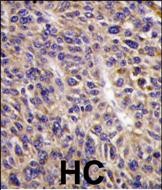 Formalin-fixed and paraffin-embedded human hepatocarcinoma reacted with UBE2L6 Antibody (N-term)(Cat.#P32613), which was peroxidase-conjugated to the secondary antibody, followed by DAB staining. This data demonstrates the use of this antibody for immunohistochemistry; clinical relevance has not been evaluated. |