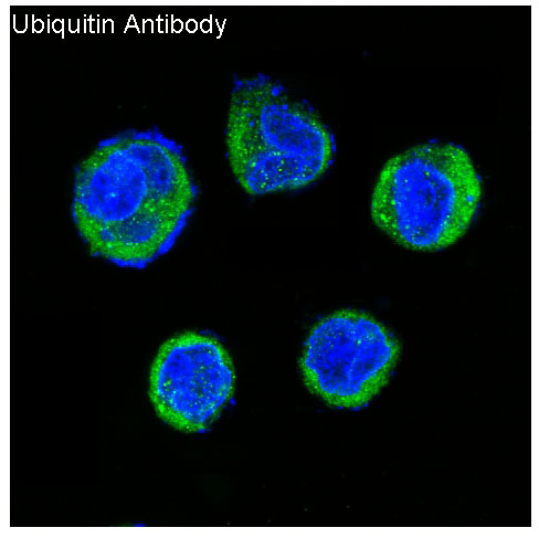 Immunofluorescence analysis of Ubiquitin in Raji using Ubiquitin antibody. |