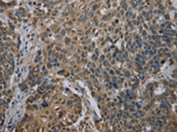 The image is immunohistochemistry of paraffin-embedded Human cervical cancer tissue using P11899(UBP1 Antibody) at dilution 1/40. (Original magnification: ×200) |