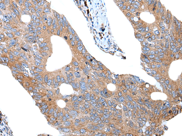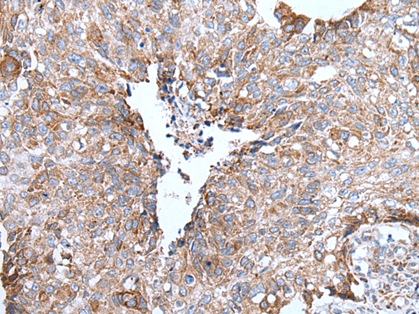 The image is immunohistochemistry of paraffin-embedded Human lung cancer tissue using P12915(UGGT1 Antibody) at dilution 1/20. (Original magnification: ×200) |