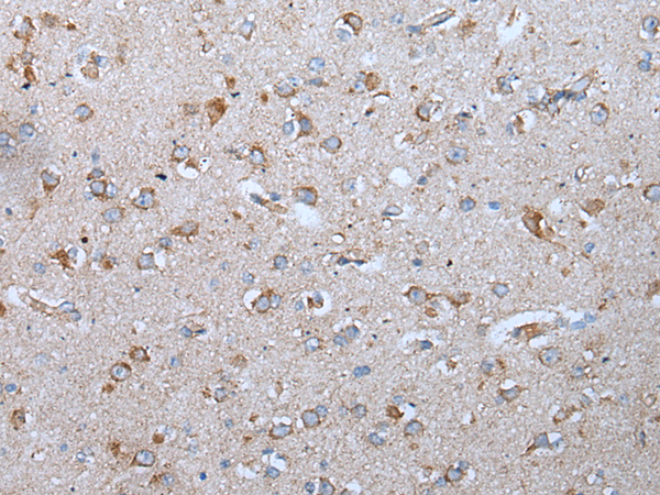 The image is immunohistochemistry of paraffin-embedded Human brain tissue using P06029(UGGT2 Antibody) at dilution 1/20. (Original magnification: ×200) |