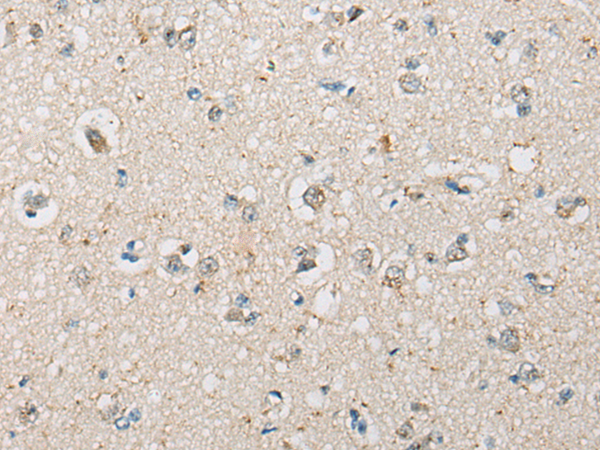 The image is immunohistochemistry of paraffin-embedded Human brain tissue using P05483(UGT1A4 Antibody) at dilution 1/20. (Original magnification: ×200) |