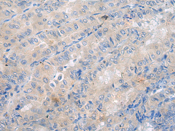 The image is immunohistochemistry of paraffin-embedded Human liver cancer tissue using P12918(ULK2 Antibody) at dilution 1/25. (Original magnification: ×200) |