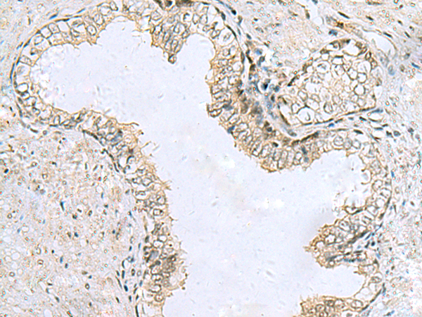The image is immunohistochemistry of paraffin-embedded Human prostate cancer tissue using P12924(USP24 Antibody) at dilution 1/20. (Original magnification: ×200) |