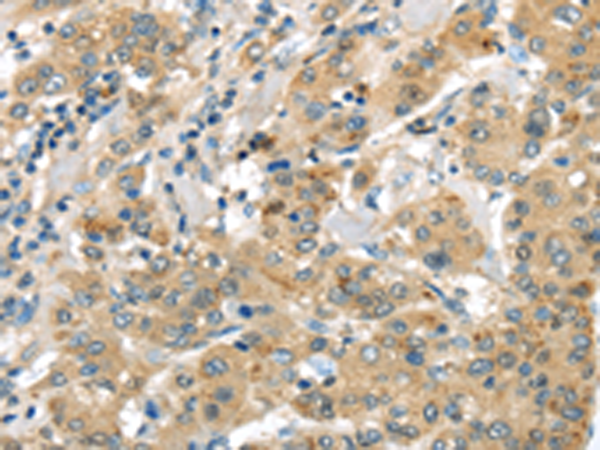 The image is immunohistochemistry of paraffin-embedded Human liver cancer tissue using P12377(UTS2B Antibody) at dilution 1/35. (Original magnification: ×200) |